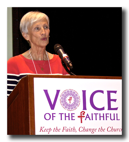VOTF trustee and treasurer Anne Southwood listens attentively to 2015 national Assembly featured speaker Marie Collins’ presentation. |
